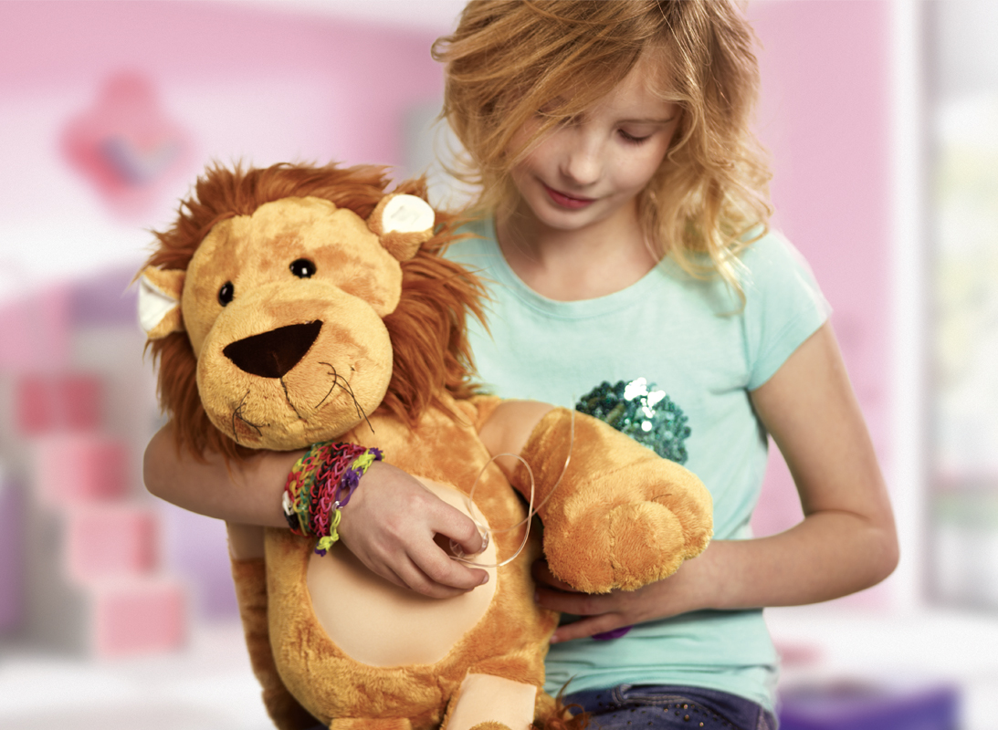 Lenny® il leone, morbido peluche con 6 zone pensate per esercitarsi a posizionare il set di infusione o a praticare iniezioni. Altezza 61 cm circa.